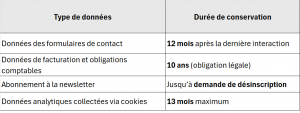 5. Durée de conservation des données